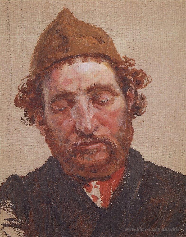 Ti offriamo una riproduzione artigianale su tela dell'opera famosa 'Testa di uomo dai capelli rossi con tappo giallo' di Vasily Polenov, dal Museo delle Riproduzioni.