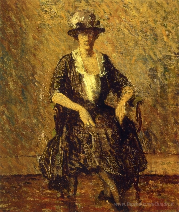 Ti offriamo una riproduzione artigianale su tela dell'opera famosa 'The Blue Gown' di Robert Spencer, dal Museo delle Riproduzioni.