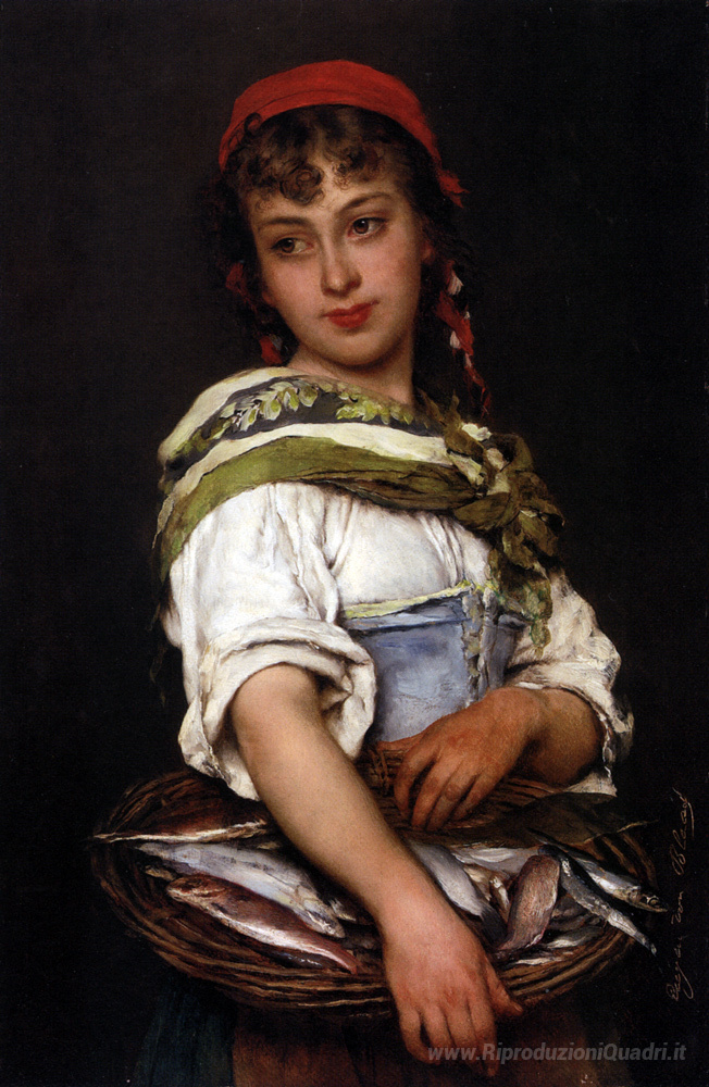 Ti offriamo una riproduzione artigianale su tela dell'opera famosa 'The Catch Giorni' di Eugene de Blaas, dal Museo delle Riproduzioni.