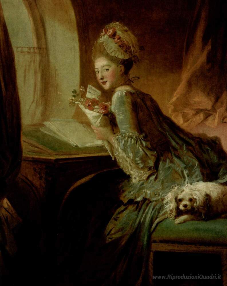Ti offriamo una riproduzione artigianale su tela dell'opera famosa 'The Love Letter' di Jean-Honore Fragonard, dal Museo delle Riproduzioni.
