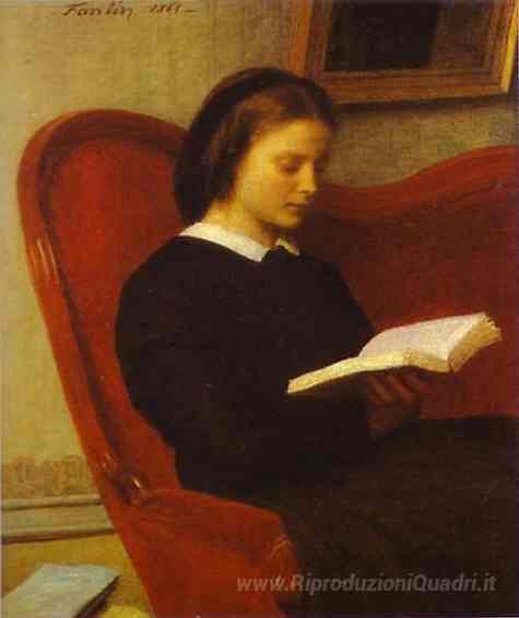 Ti offriamo una riproduzione artigianale su tela dell'opera famosa 'The Reader (Marie Fantin Latour, sorella dell'artista)' di Henri Fantin-Latour, dal Museo delle Riproduzioni.