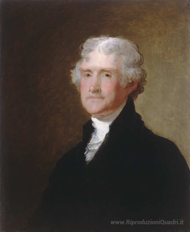 Ti offriamo una riproduzione artigianale su tela dell'opera famosa 'Thomas Jefferson' di Gilbert Stuart, dal Museo delle Riproduzioni.