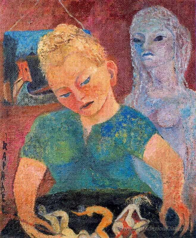 Ti offriamo una riproduzione artigianale su tela dell'opera famosa 'Titolo sconosciuto' di Antonietta Raphael, dal Museo delle Riproduzioni.