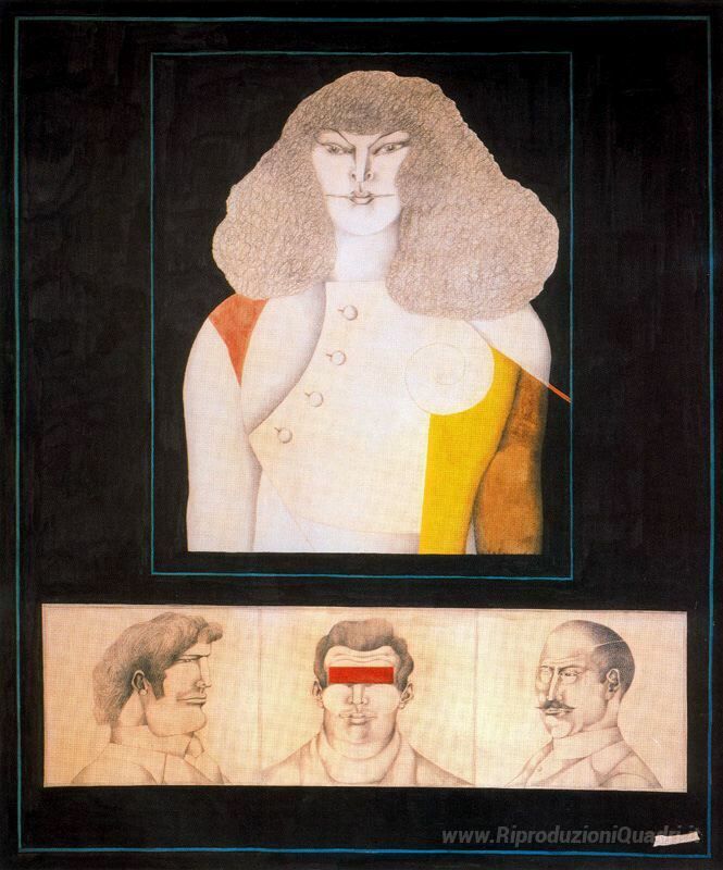 Ti offriamo una riproduzione artigianale su tela dell'opera famosa 'Tre Und' di Richard Lindner, dal Museo delle Riproduzioni.