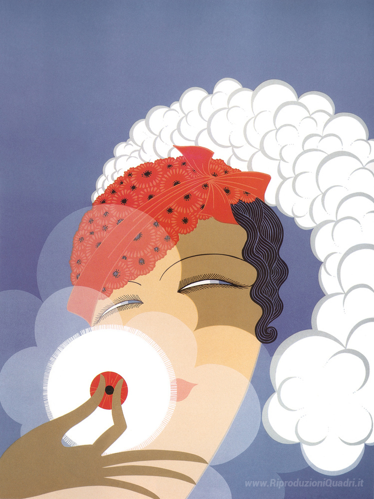 Ti offriamo una riproduzione artigianale su tela dell'opera famosa 'Trucco' di Erte, dal Museo delle Riproduzioni.