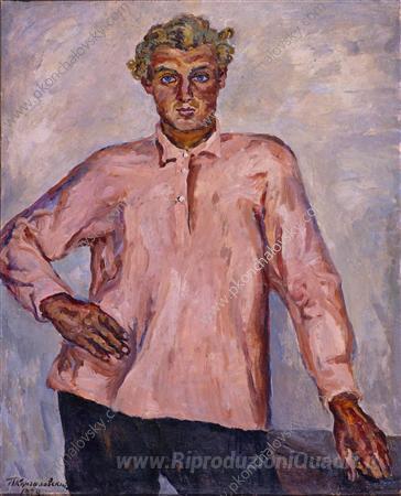 Ti offriamo una riproduzione artigianale su tela dell'opera famosa 'Un giovane poser dal villaggio Samokrazhi' di Pyotr Konchalovsky, dal Museo delle Riproduzioni.