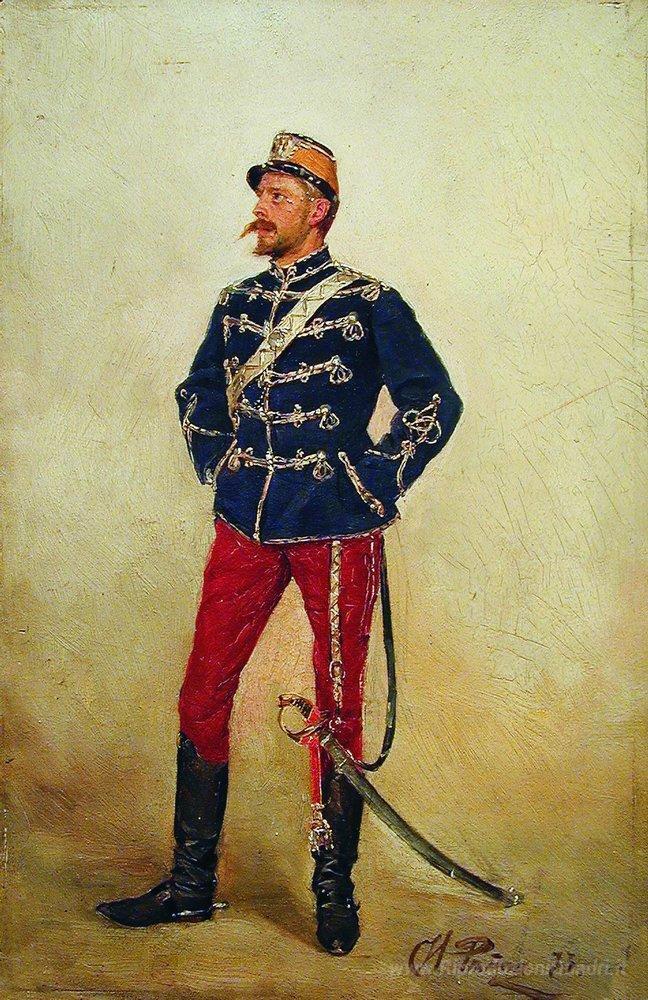 Ti offriamo una riproduzione artigianale su tela dell'opera famosa 'Un giovane uomo in uniforme militare' di Ilya Repin, dal Museo delle Riproduzioni.
