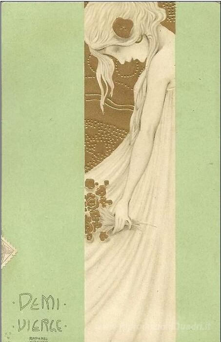 Ti offriamo una riproduzione artigianale su tela dell'opera famosa 'Un mezzo di una Vergine' di Raphael Kirchner, dal Museo delle Riproduzioni.
