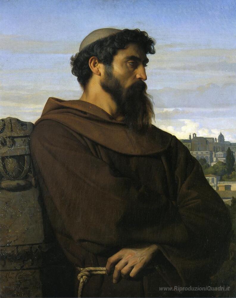 Cabanel, maestro della pittura accademica, utilizza tecniche di chiaroscuro e dettagli minuziosi per creare atmosfere avvolgenti che invitano alla riflessione. Il giovane monaco, ritratto in un intenso momento di contemplazione, trasmette una sensazione di serenità e introspezione, idealmente inserendosi in qualsiasi spazio, dal classico al contemporaneo. Questo dipinto è non solo un complemento d'arredo, ma una vera e propria finestra su un'epoca passata, capace di esaltare l'atmosfera della vostra casa con un tocco di eleganza e cultura.