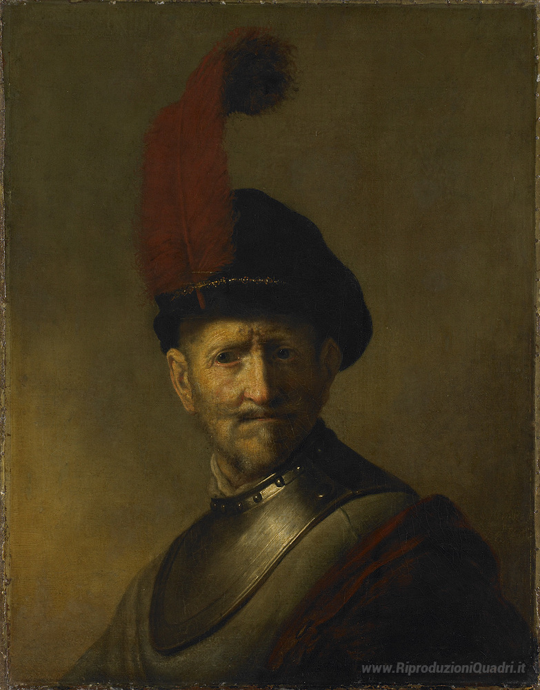 Grazie allo stile distintivo di Rembrandt, caratterizzato da una straordinaria profondità psicologica e dal contrasto di luci e ombre, questa opera non è solo un elemento decorativo, ma un vero e proprio dialogo che arricchisce l'atmosfera di qualsiasi ambiente. Posizionare Un uomo anziano in Costume Militare nei vostri spazi non solo porterà un tocco di eleganza, ma inviterà anche alla riflessione e all'apprezzamento della grande arte italiana.