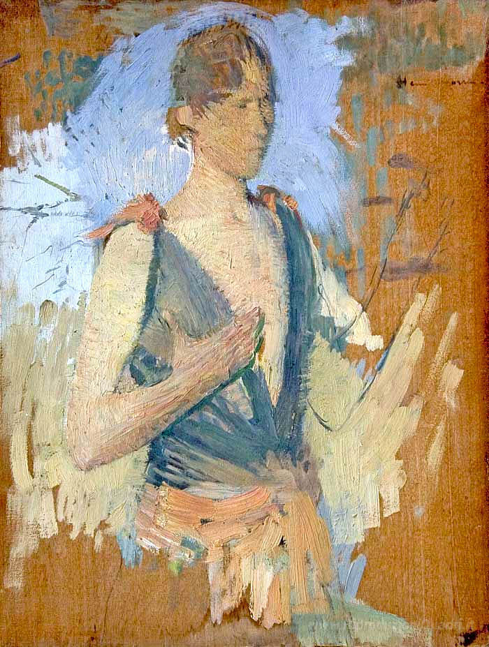 Ti offriamo una riproduzione artigianale su tela dell'opera famosa 'Una Giovane Donna' di Henri Martin, dal Museo delle Riproduzioni.