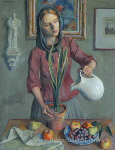 Ti offriamo una riproduzione artigianale su tela dell'opera famosa 'Una Pianta per Elizabeth' di Robert Brackman, dal Museo delle Riproduzioni.