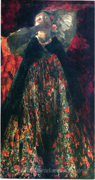 Ti offriamo una riproduzione artigianale su tela dell'opera famosa 'Una ragazza' di Filipp Malyavin, dal Museo delle Riproduzioni.