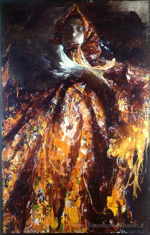 Ti offriamo una riproduzione artigianale su tela dell'opera famosa 'Una ragazza' di Filipp Malyavin, dal Museo delle Riproduzioni.