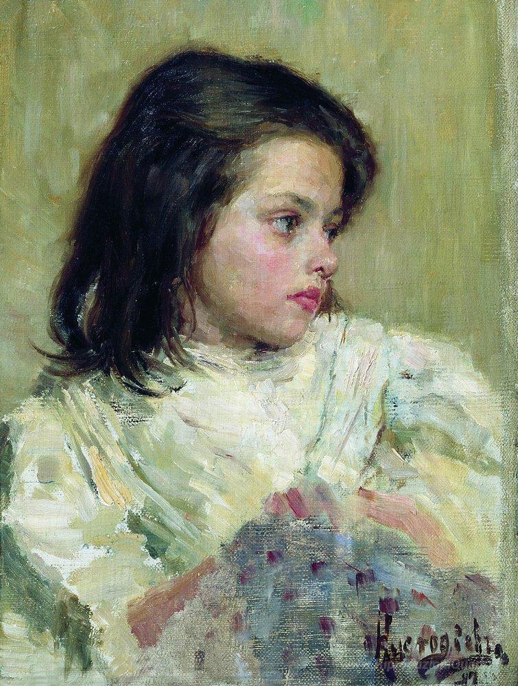 Ti offriamo una riproduzione artigianale su tela dell'opera famosa 'Una ragazza. Sketch' di Boris Kustodiev, dal Museo delle Riproduzioni.