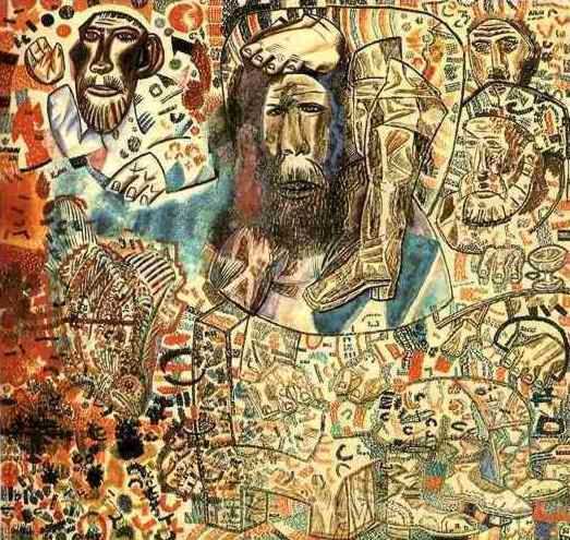 Ti offriamo una riproduzione artigianale su tela dell'opera famosa 'Untitled (Heads, un avvio, un pesce)' di Pavel Filonov, dal Museo delle Riproduzioni.