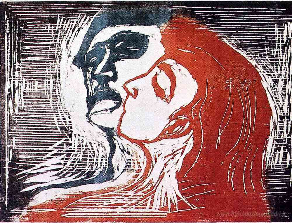 Ti offriamo una riproduzione artigianale su tela dell'opera famosa 'Uomo e donna sono' di Edvard Munch, dal Museo delle Riproduzioni.