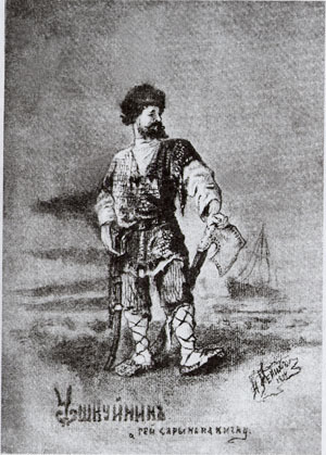 Ti offriamo una riproduzione artigianale su tela dell'opera famosa 'Ushkuinik' di Nicholas Roerich, dal Museo delle Riproduzioni.