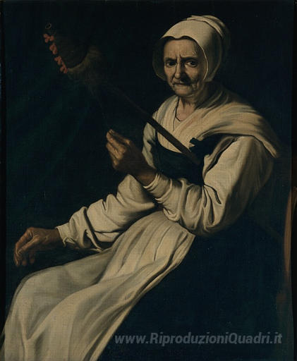 Ti offriamo una riproduzione artigianale su tela dell'opera famosa 'Vecchia donna filatura' di Francisco de Zurbaran, dal Museo delle Riproduzioni.