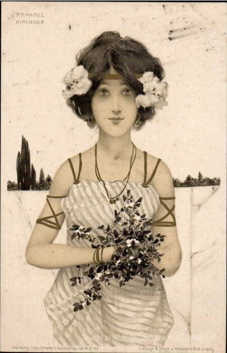 Ti offriamo una riproduzione artigianale su tela dell'opera famosa 'Virgins greci' di Raphael Kirchner, dal Museo delle Riproduzioni.