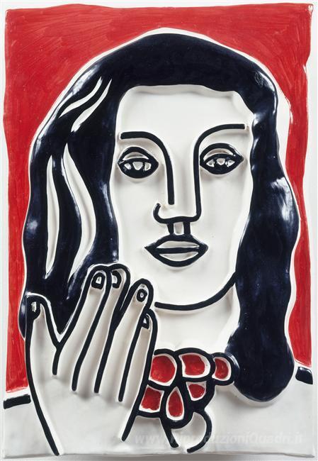 Ti offriamo una riproduzione artigianale su tela dell'opera famosa 'Volto a mano su fondo rosso' di Fernand Leger, dal Museo delle Riproduzioni.