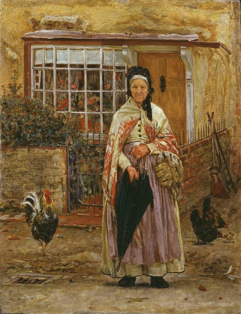 Ti offriamo una riproduzione artigianale su tela dell'opera famosa 'Will It Pioggia?' di James Charles, dal Museo delle Riproduzioni.