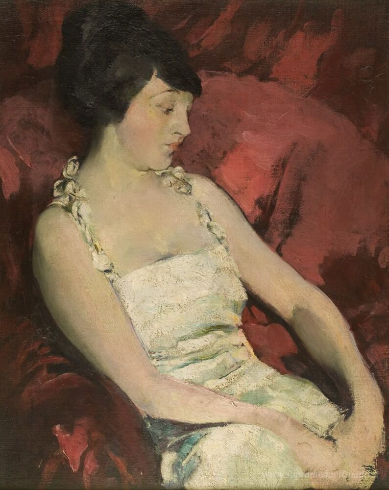 Ti offriamo una riproduzione artigianale su tela dell'opera famosa 'Woman in White' di Arthur Beecher Carles, dal Museo delle Riproduzioni.
