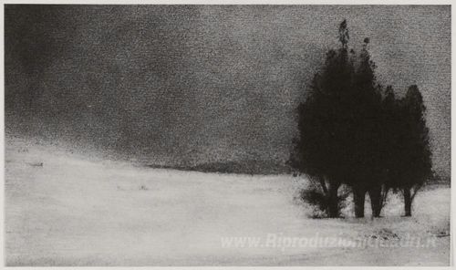 Ti offriamo una riproduzione artigianale su tela dell'opera famosa 'Tre alberi in un paesaggio innevato' di Robert Demachy, dal Museo delle Riproduzioni.