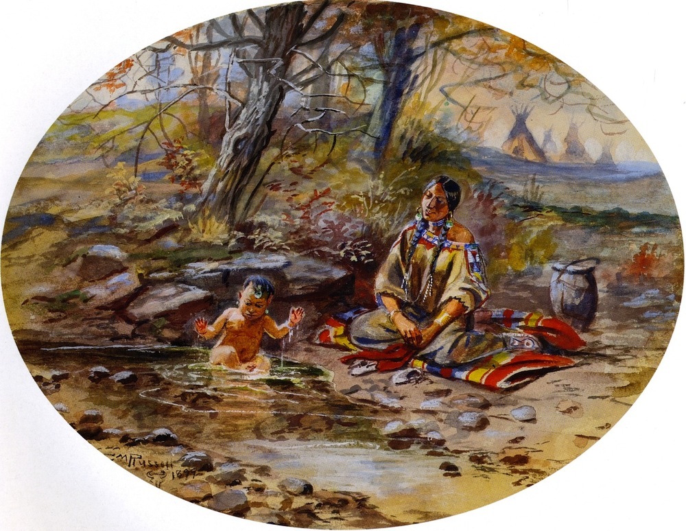 Ti offriamo una riproduzione artigianale su tela dell'opera famosa 'Il bagno' di Charles M. Russell, dal Museo delle Riproduzioni.