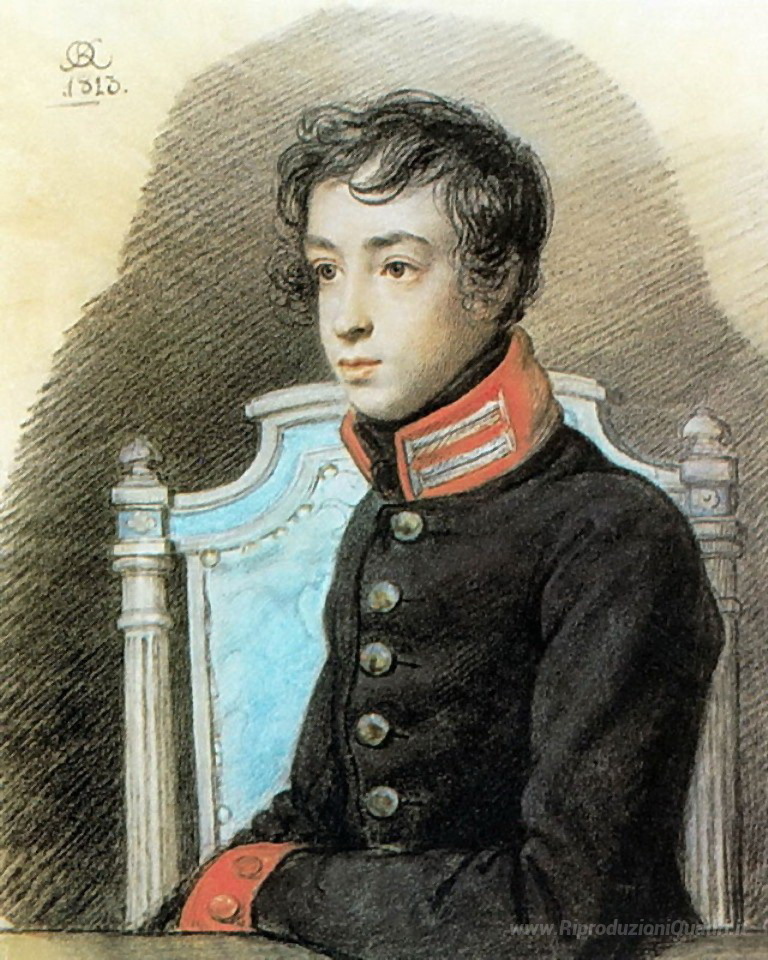 Ti offriamo una riproduzione artigianale su tela dell'opera famosa 'Ritratto di A. P. Bakunin' di Orest Kiprensky, dal Museo delle Riproduzioni.