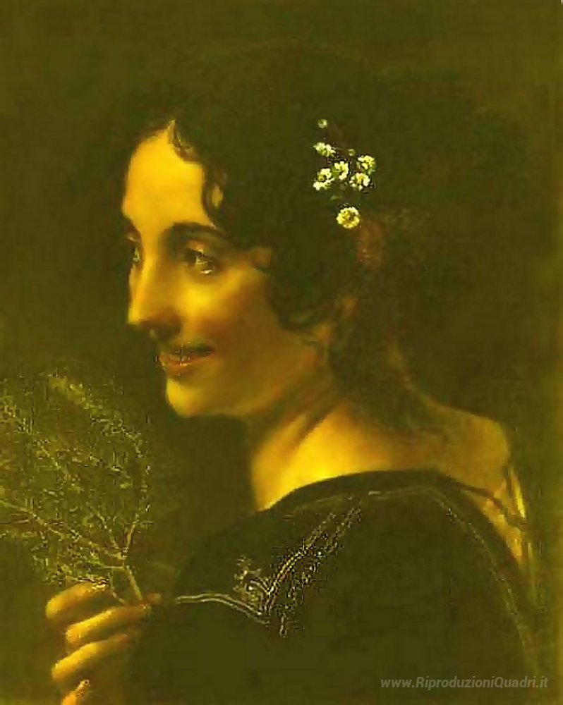 Ti offriamo una riproduzione artigianale su tela dell'opera famosa 'Uno zingaro con un ramo di mirto' di Orest Kiprensky, dal Museo delle Riproduzioni.