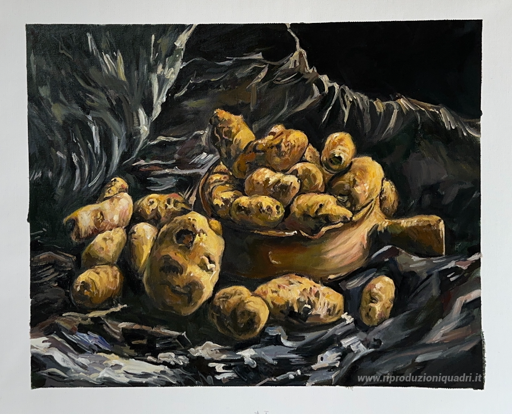 Natura morta con una ciotola Earthern e patate