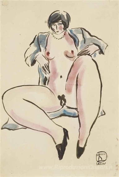 Ti offriamo una riproduzione artigianale su tela dell'opera famosa 'Nudo seduto in Blue' di Sanyu, dal Museo delle Riproduzioni.