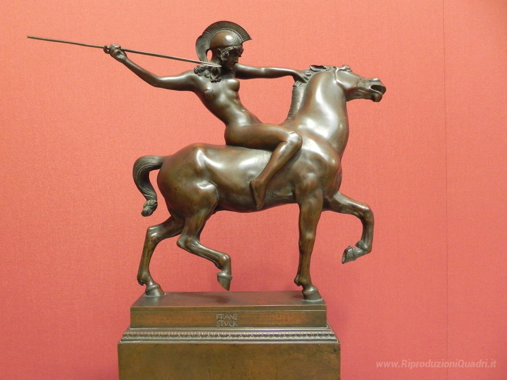 Ti offriamo una riproduzione artigianale su tela dell'opera famosa 'Amazon a cavallo' di Franz Stuck, dal Museo delle Riproduzioni.