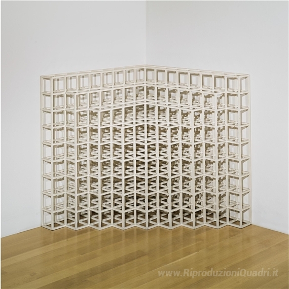 Ti offriamo una riproduzione artigianale su tela dell'opera famosa 'Angolo pezzo n ° 2' di Sol LeWitt, dal Museo delle Riproduzioni.