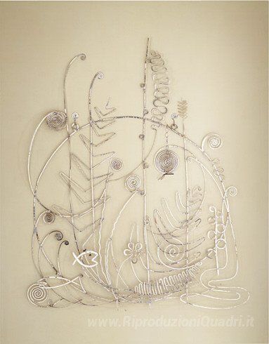 Ti offriamo una riproduzione artigianale su tela dell'opera famosa 'Argento Head Bed' di Alexander Calder, dal Museo delle Riproduzioni.
