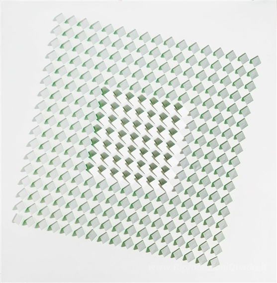 Ti offriamo una riproduzione artigianale su tela dell'opera famosa 'Atmosphère chromoplastique N ° 316' di Luis Tomasello, dal Museo delle Riproduzioni.