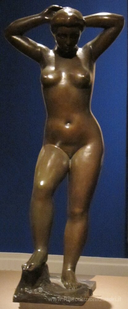Ti offriamo una riproduzione artigianale su tela dell'opera famosa 'Bagnante Mettere i capelli' di Aristide Maillol, dal Museo delle Riproduzioni.