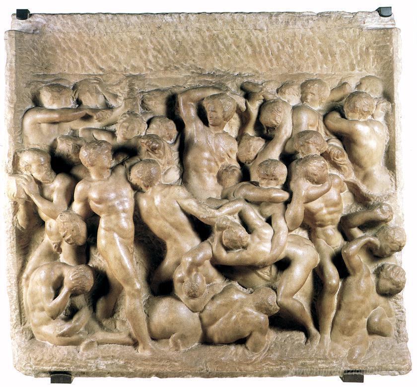 Ti offriamo una riproduzione artigianale su tela dell'opera famosa 'Battaglia dei Centauri e Lapiti' di Michelangelo, dal Museo delle Riproduzioni.