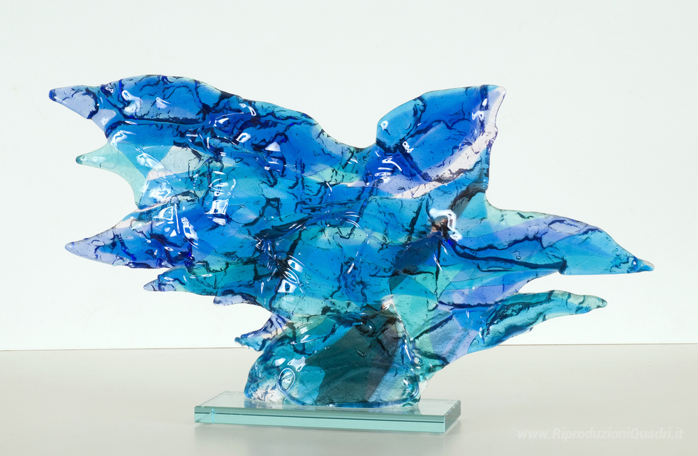 Ti offriamo una riproduzione artigianale su tela dell'opera famosa 'Blue Bird - in vetro fusione di arte - astratta scultura in vetr' di Daan Lemaire, dal Museo delle Riproduzioni.