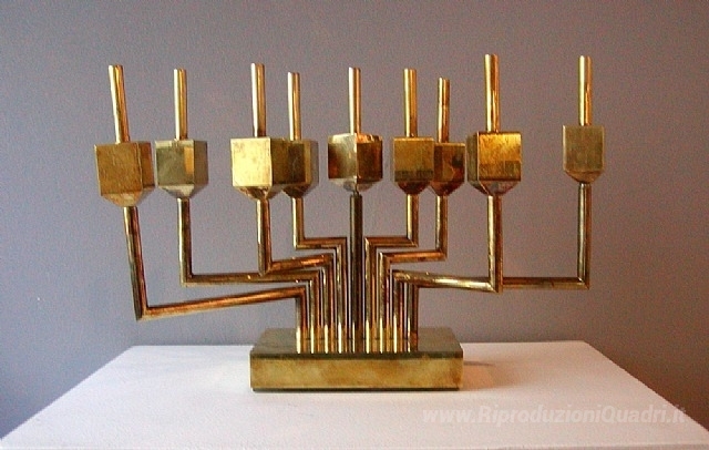 Ti offriamo una riproduzione artigianale su tela dell'opera famosa 'Candalabragam' di Yaacov Agam, dal Museo delle Riproduzioni.