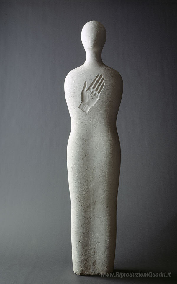 Ti offriamo una riproduzione artigianale su tela dell'opera famosa 'Costante uomo' di Fausto Melotti, dal Museo delle Riproduzioni.