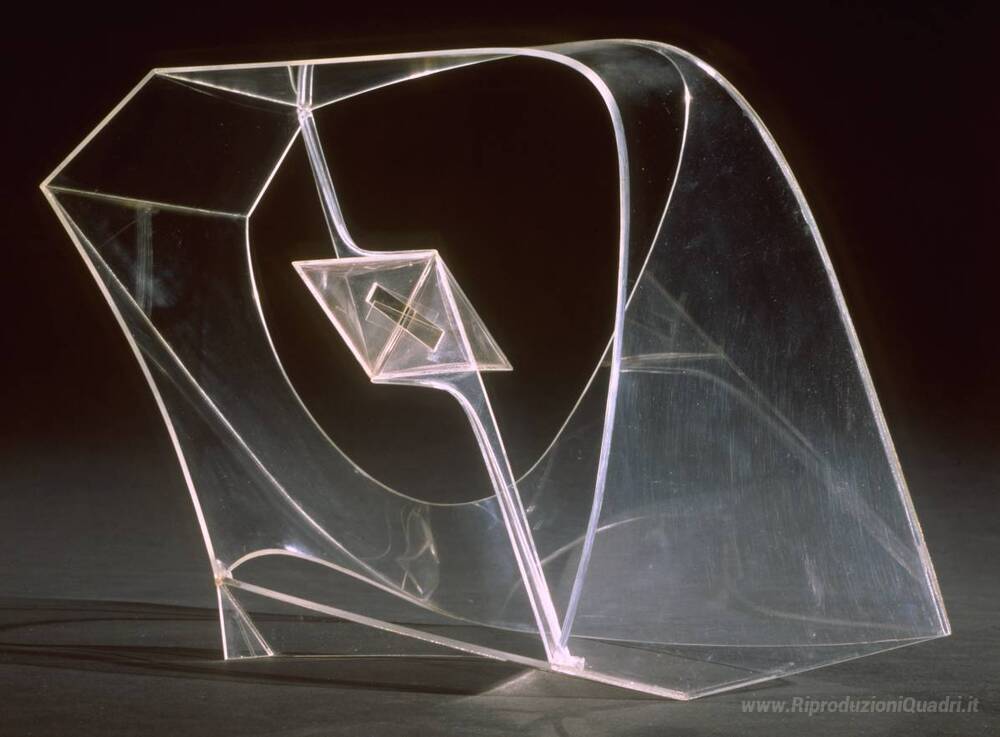 Ti offriamo una riproduzione artigianale su tela dell'opera famosa 'Costruzione nello spazio con cristallina Centro' di Naum Gabo, dal Museo delle Riproduzioni.