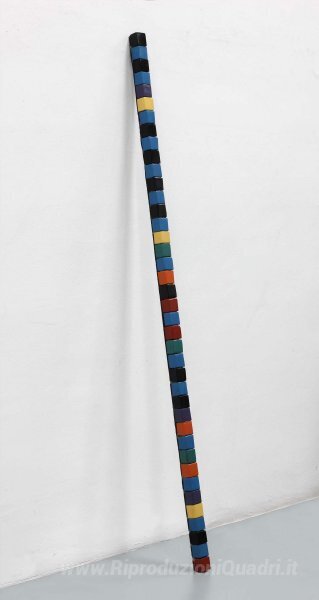 Ti offriamo una riproduzione artigianale su tela dell'opera famosa 'Cubic barra di legno' di Andre Cadere, dal Museo delle Riproduzioni.