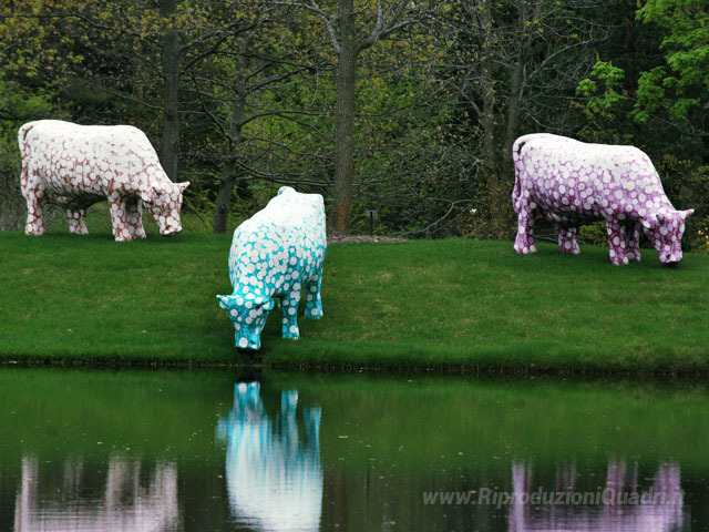 Ti offriamo una riproduzione artigianale su tela dell'opera famosa 'Des Vaches: Mo, Ni, Que' di Samuel Buri, dal Museo delle Riproduzioni.