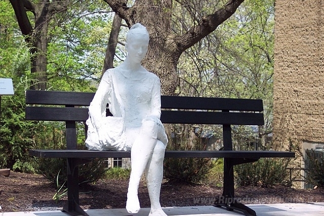 Ti offriamo una riproduzione artigianale su tela dell'opera famosa 'Donna su una panchina' di George Segal, dal Museo delle Riproduzioni.