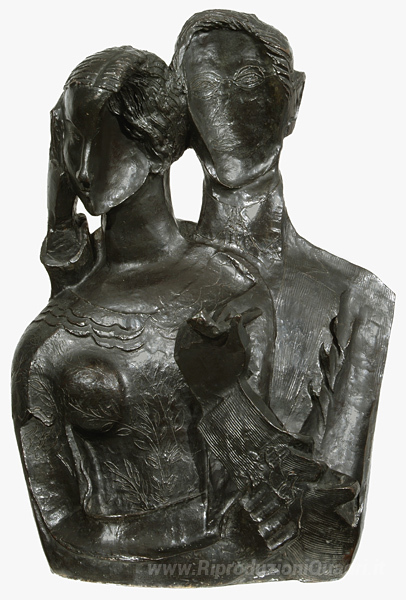 Ti offriamo una riproduzione artigianale su tela dell'opera famosa 'Doppio Ritratto di Nel e Henk Wiegersma' di Ossip Zadkine, dal Museo delle Riproduzioni.