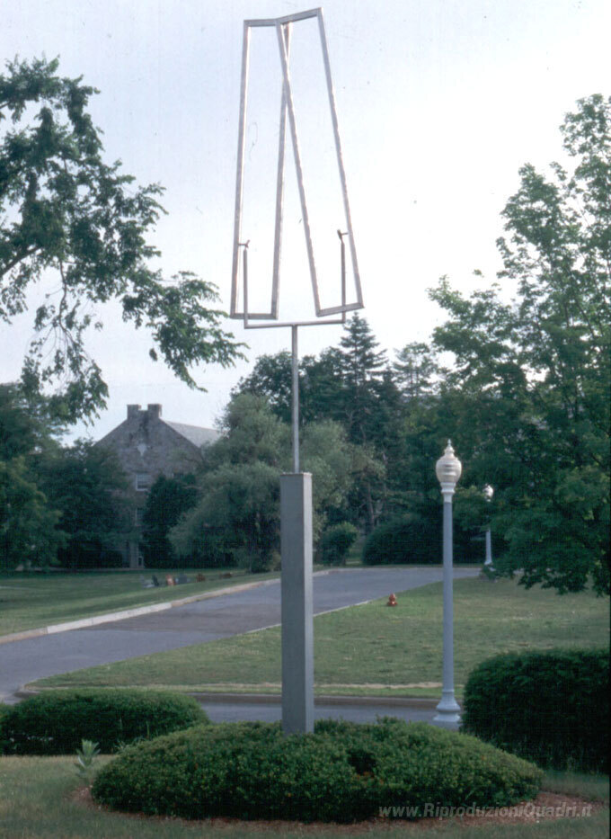Ti offriamo una riproduzione artigianale su tela dell'opera famosa 'Due Aperto Rettangoli, eccentrica, Varietà VI' di George Rickey, dal Museo delle Riproduzioni.