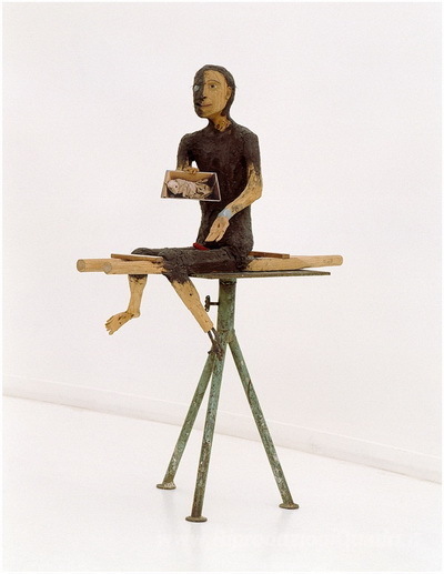 Ti offriamo una riproduzione artigianale su tela dell'opera famosa 'Es geht um die wurst' di Jimmie Durham, dal Museo delle Riproduzioni.