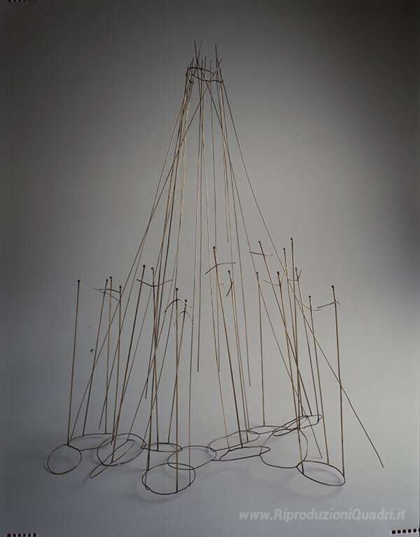 Ti offriamo una riproduzione artigianale su tela dell'opera famosa 'La pioggia' di Fausto Melotti, dal Museo delle Riproduzioni.